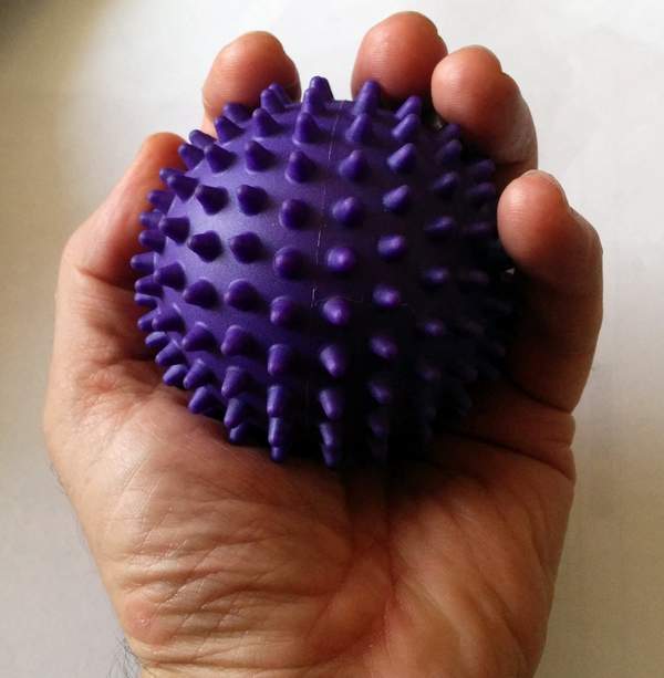 This 7.5cm diam reflexology ball is firm but not rock hard. It's 212 fine raised points provide great skin and muscle stimulation. It fits easily into your hand (it is 20% smaller than our traditional massage ball.